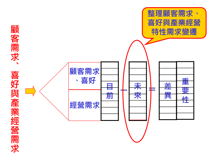 圖一、展望未來,檢視顧客需求、喜好與產業經營特性需求的變遷